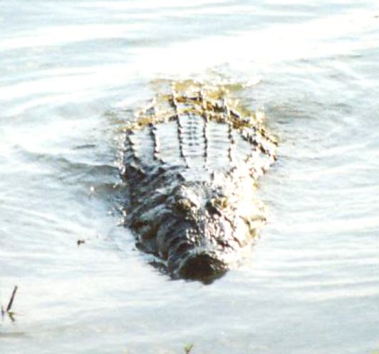 Plotseling gleed een grote krokodil snel het water in en wel precies in onze richting.