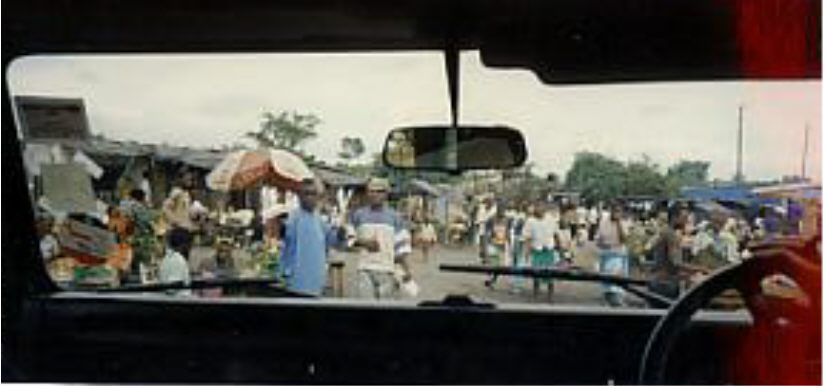 van Lusaka. Hier is het een levendig zooitje. Overal lopen zwarte mensen.